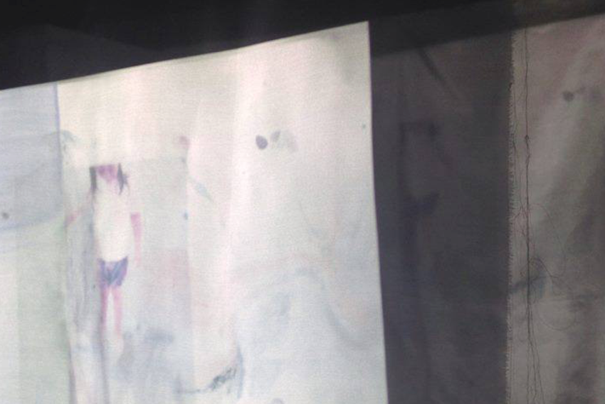 One student whose work is on display is Rebecca Cairns – a contemporary artist from East Ayrshire. Rebecca’s work focuses on transparent mediums, photography, distortion and installation art. She cites Peter Doig as one of her major influences as his work is often based on photography and then adapted to create surreal and magical scenes that are far from reality. Her main project is a light installation of distorted photographs projected through three layers of fabric entitled ‘Memories of Memories’. It represents how memories fade and alter over time.